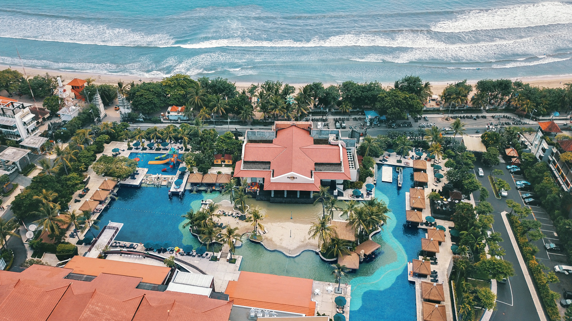 Настоящий балийский пляжный курорт с лучшим пляжем для купания на Бали. Окруженный пышным тропическим садом, из него открывается потрясающий вид на Индийский океан. Истинное отражение балийского искусства: каменные статуи, фонтаны, резные рельефы и бассейны в форме лагуны.